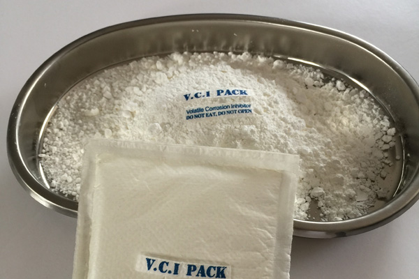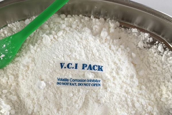 氣相防銹粉末多種特制的氣相緩蝕劑原料按一定配比均勻混合加工而成,具有水溶性,是一種新型的氣化性防銹材料。在密閉空間內(nèi),VCI經(jīng)氣化揮發(fā)到金屬的每個角落,吸附在金屬表面形成致密保護(hù)膜層從而起到防銹的作用